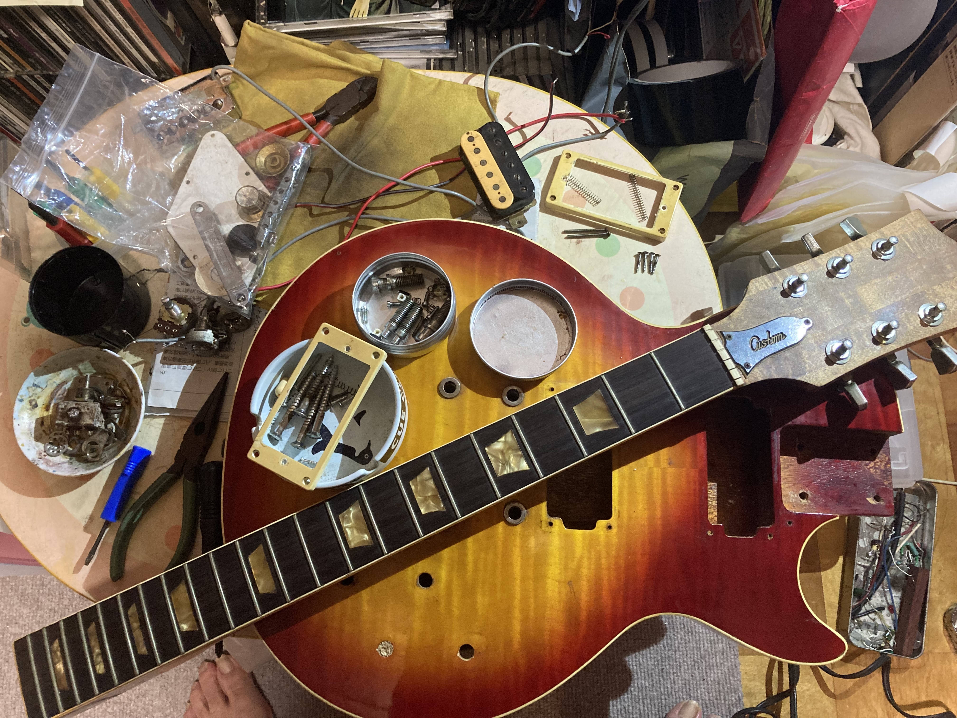 先日のレスポールもどきですが、調べたところ初期グレコの、しかもかの有名な成毛茂氏が制作に関わったモデルだということが判明しました。音を出すのが楽しみになってきました。