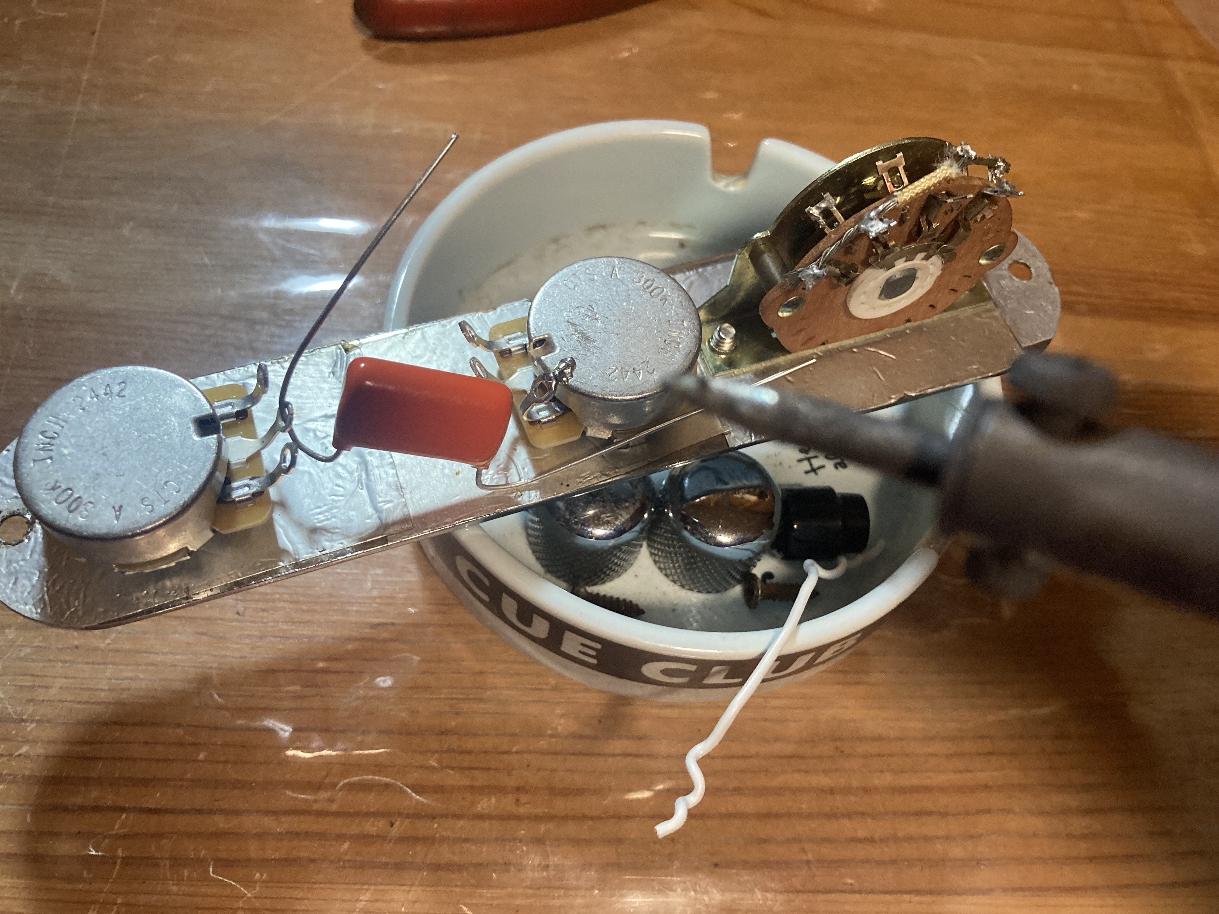 ギターに使われるポットはシングルなら250K、ハムなら500Kが通常ですが、P90の場合は300Kが推奨されることが多いので、今回は初めて300Kを付けてみます。