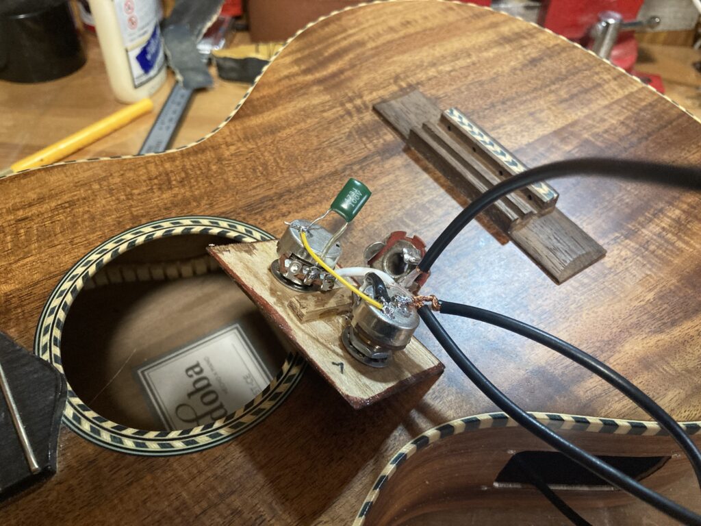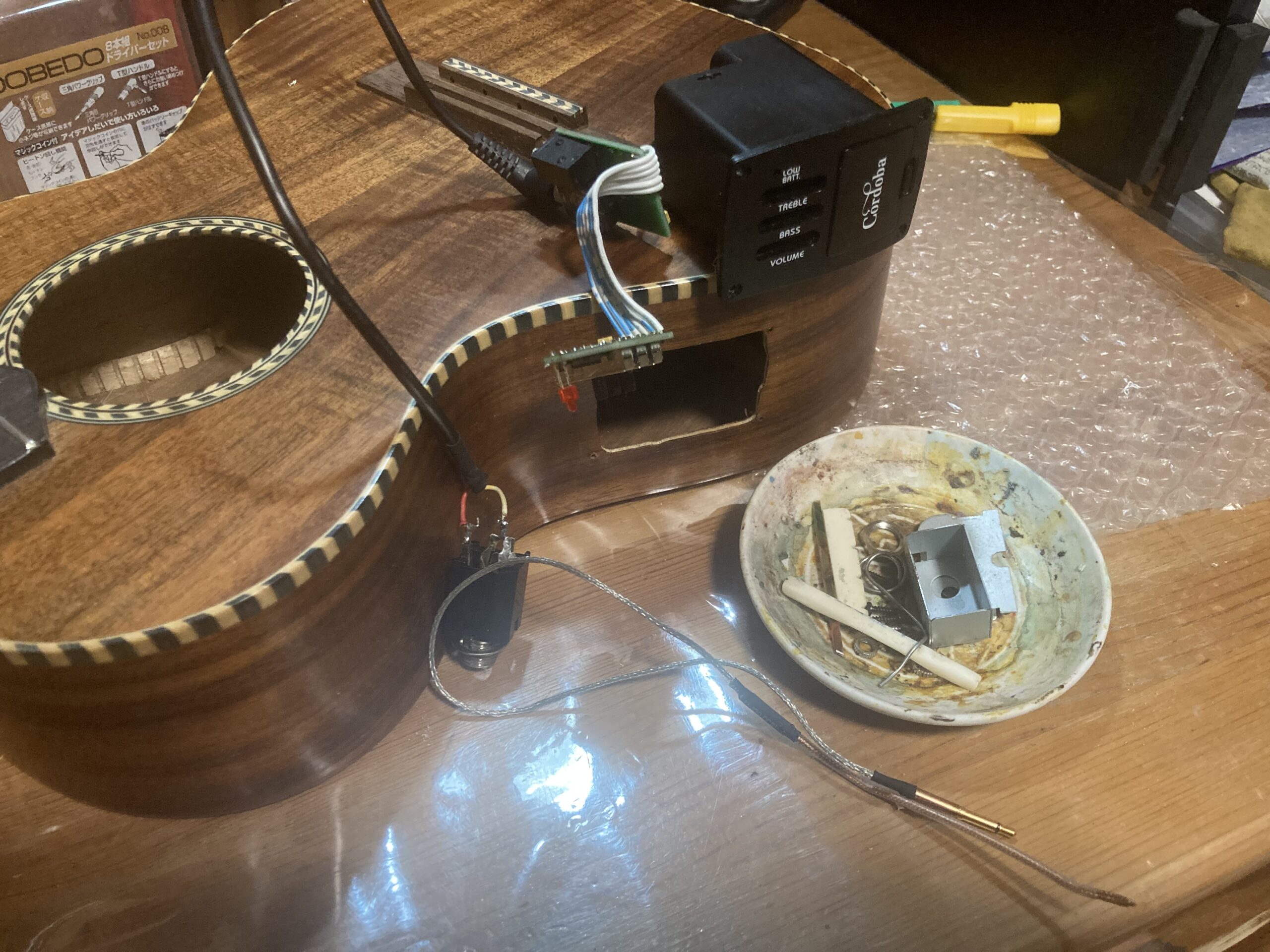この後サドルを作りなおします。アンダーサドルピエゾを外した分低くなってしまったので。