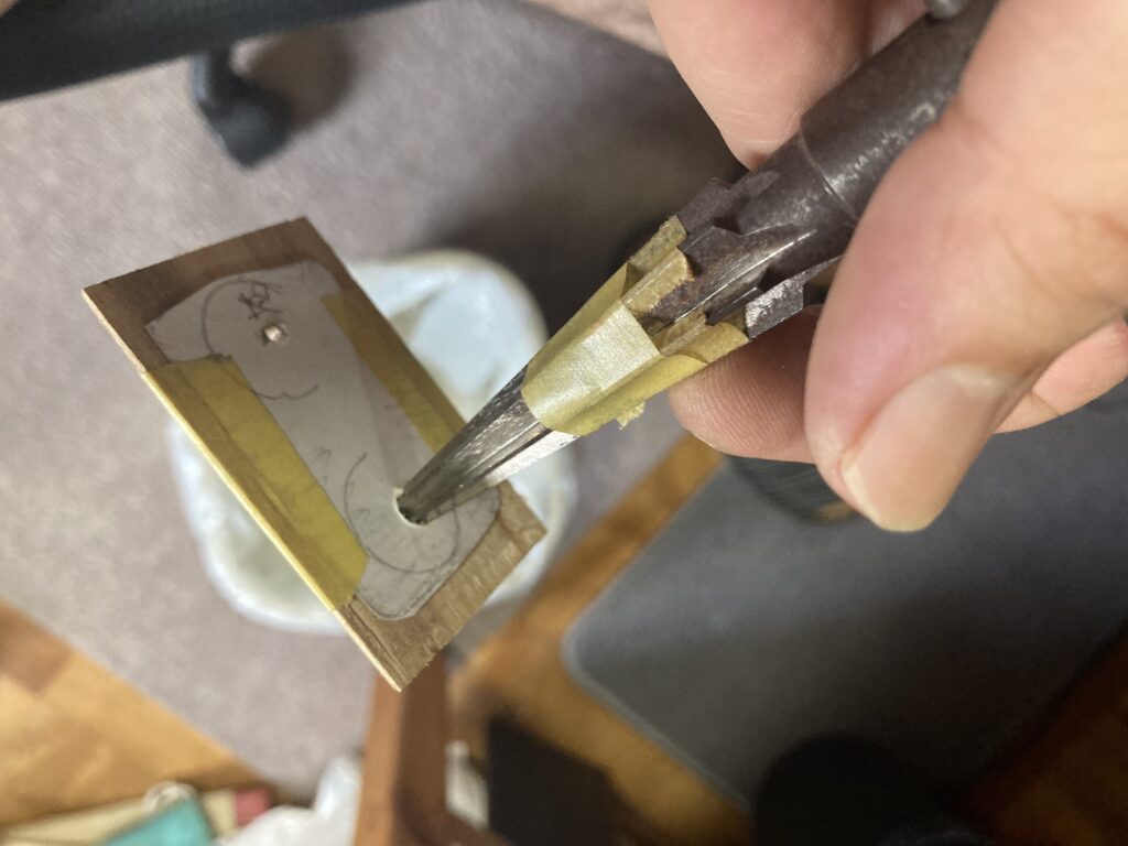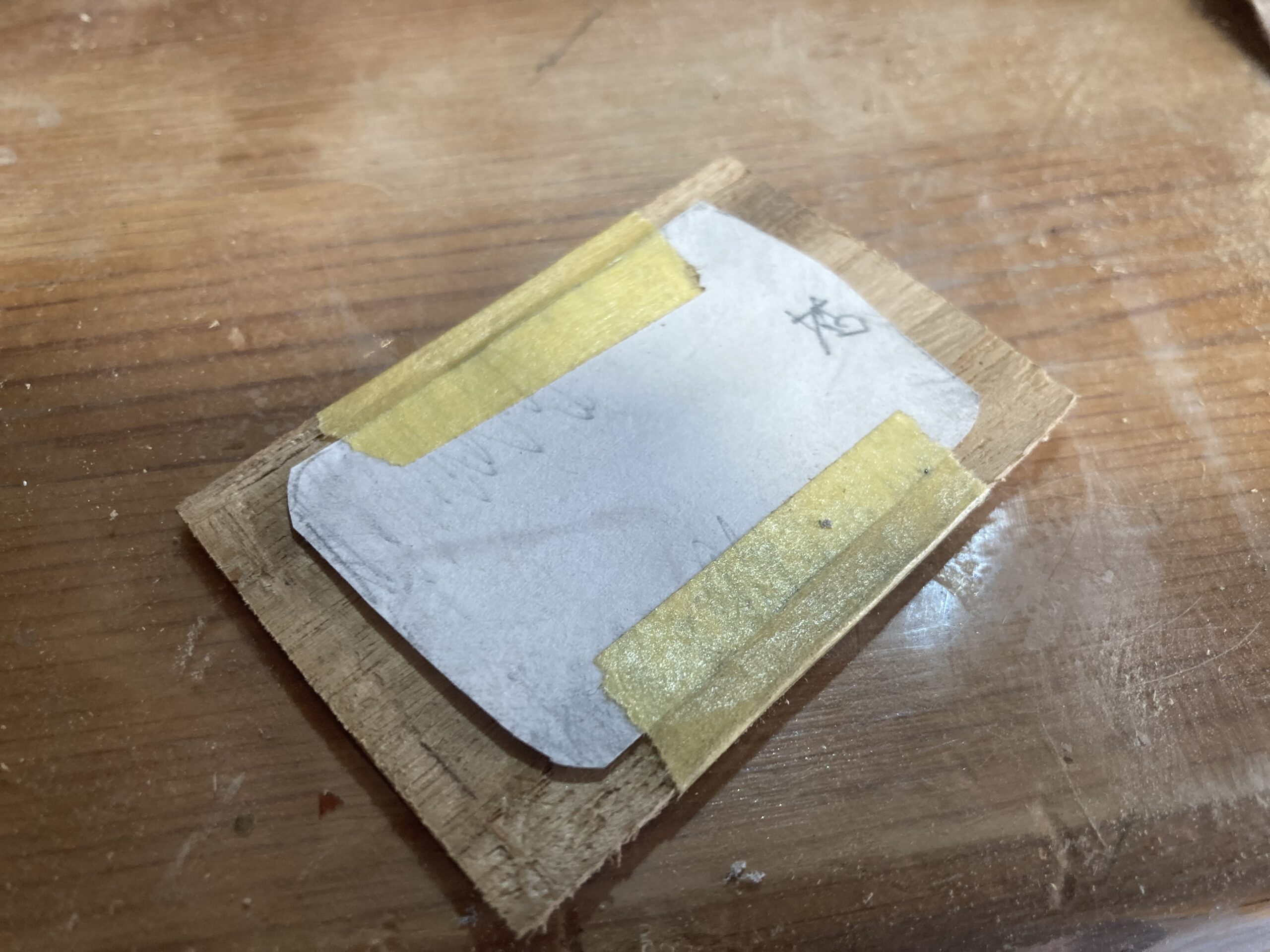 適当に破壊して穴のサイズをトレースした紙を貼り付けます。