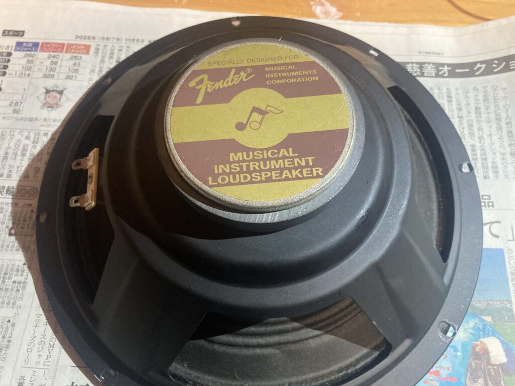 折角小さなヘッドアンプ(MV50)を買ったのだから、8インチくらいの持ち運びできるスピーカーキャビネットを作ろうかなと考えていたところ、メルカリにフェンダー(たぶんエミネンス製)のスピーカーが出てたので早速購入。
